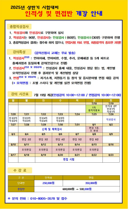2025년 상반기 시험대비 인적성및 면접반 개강안내